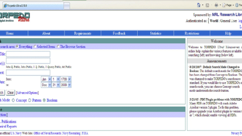 Today, TORPEDO Ultra v2.5.0 is the Ruth H. Hooker Research Library’s upgraded retrieval system for searching NRL’s locally loaded Digital Library.